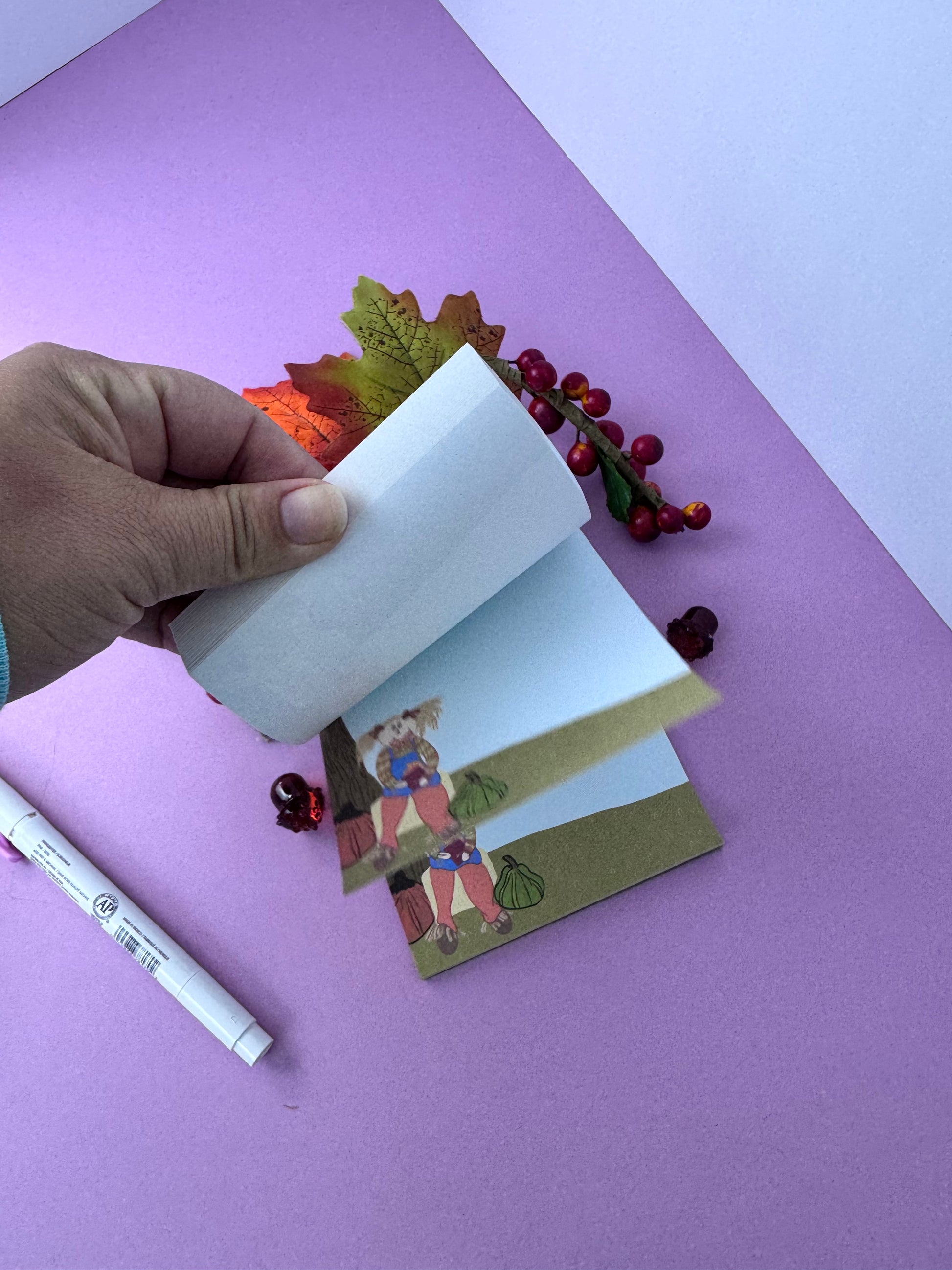 Celebrate the cozy charm of autumn with these handmade notepads featuring an adorable scarecrow who loves to read. Perfect for jotting down your fall thoughts, lists, or doodles, these playful stationery pieces bring warmth and whimsy to every page. Embrace the season’s spirit and add a touch of harvest fun to your desk or gift them to a fellow autumn lover!